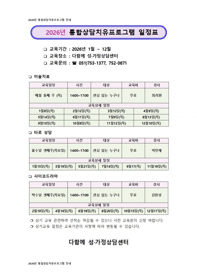 (알림) 2026년 통합치유프로그램 연간계획 안내