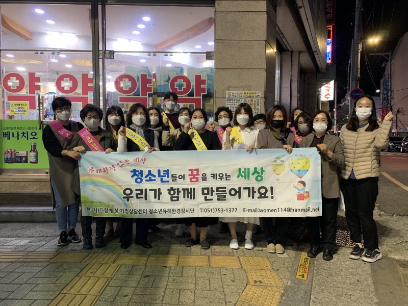 2020년 청소년 유해 환경감시단 캠페인& 폭력없는 세상만들기 캠페인 (10.20) 페이지 정보 작성자 최고관리자 작성일20-10-22 16:49 조회5,125회 관련링크 이전글 다음글 목록 본문 1. 사업명: 청소년 유해 환경감시단 캠페인 & 폭력없는 세상만들기 캠페인2. 일 시: 20년 10월 20일 3. 장 소: 수영구 교차로 일대 이전글 다음글 목록